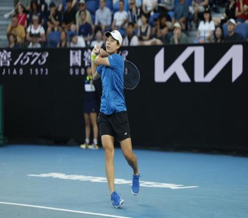 男单方面,从资格赛一路过关斩将的吴易昺今天登场。在与意大利好手纳尔迪的较量中,吴易昺继续高奏凯歌,在先下一城的情况下抵住对手反扑,最终以7比5、4比6、6比4、6比2力克对手,斩获职业生涯澳网正赛首胜。
